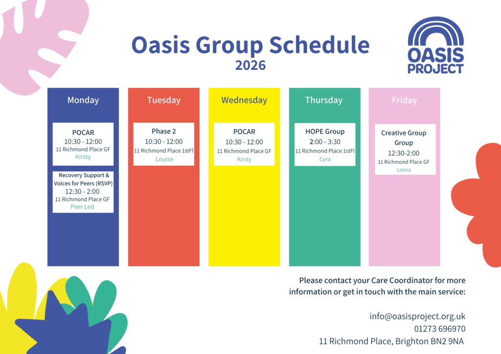 Please get in touch with Oasis if you need support and here are some other services available if you are struggling: